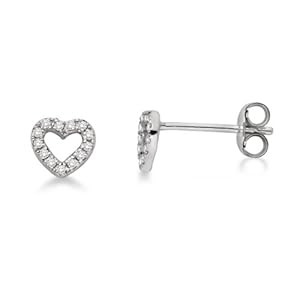 In stock. Diamond Earrings, 9ct White Gold, Diamond Heart Studs, 0.078 carat Diamond Weight, by Miore, MP9056E